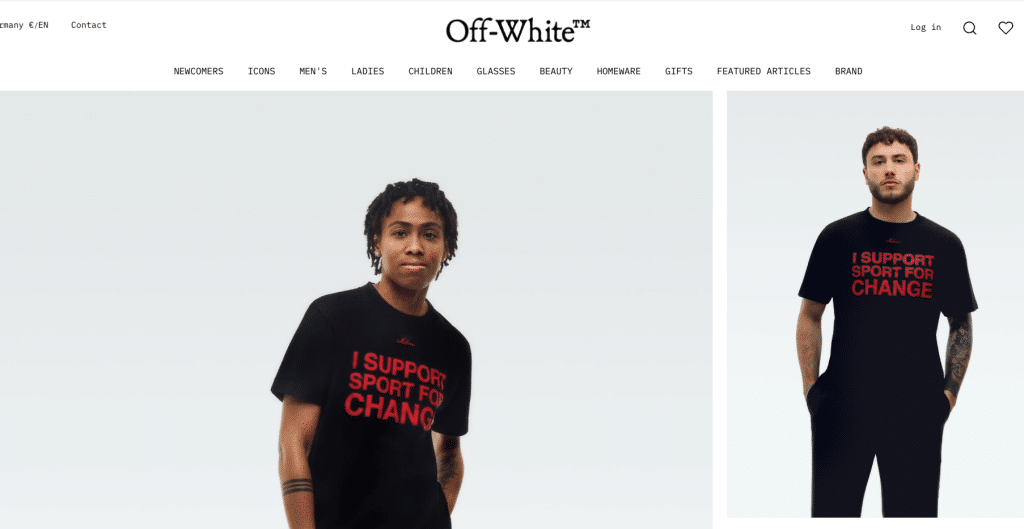 The black short sleeves T-Shirt costs 180 EUR and includes a minimal Off-White logo with subtle Milano lettering just below the neck and bold red lettering “I Support Sport for Change” on the front.