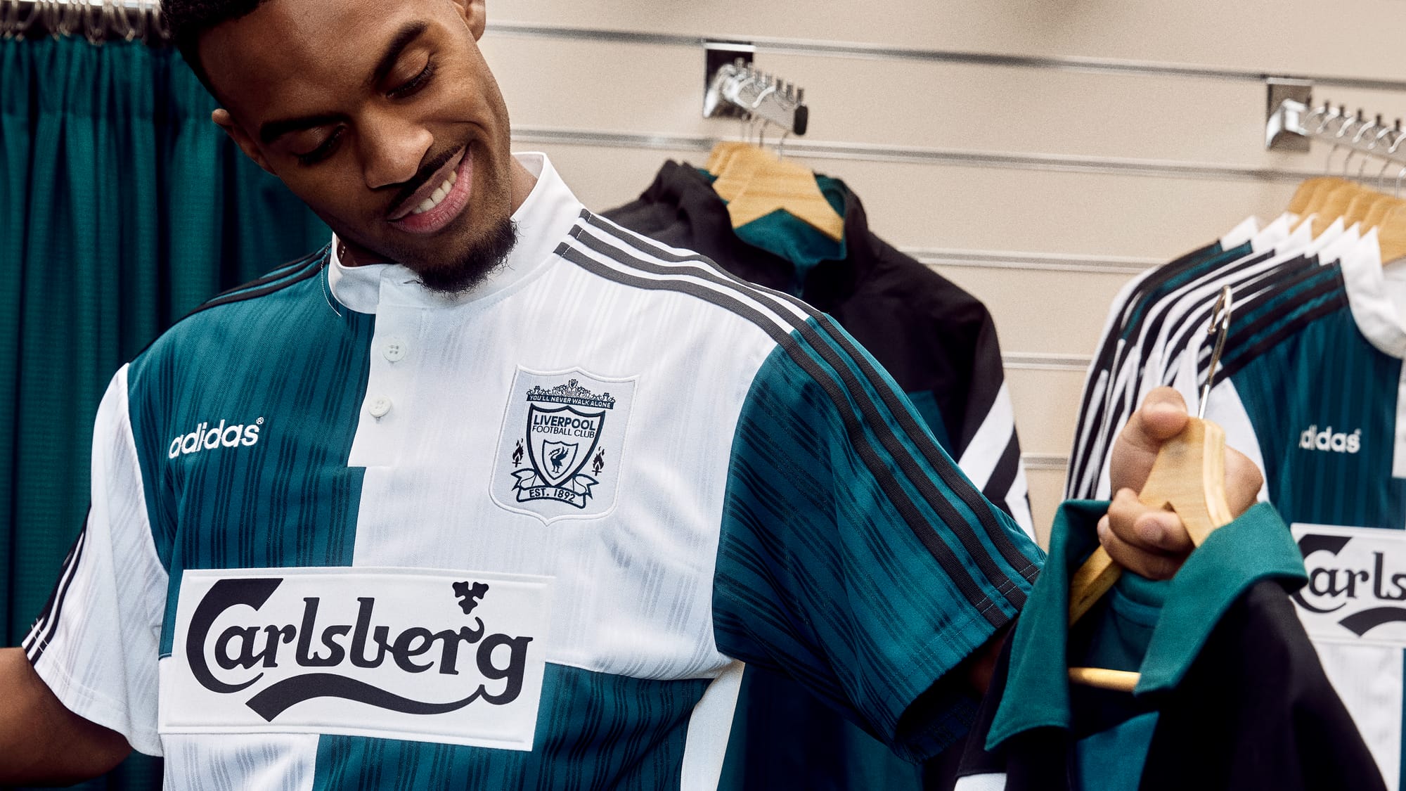 To accompany the launch, adidas and Liverpool released a campaign film inspired by football culture during the 1990s. The film is set inside a fictional retro sports shop called Fowler’s Sports, referencing former Liverpool striker Robbie Fowler.