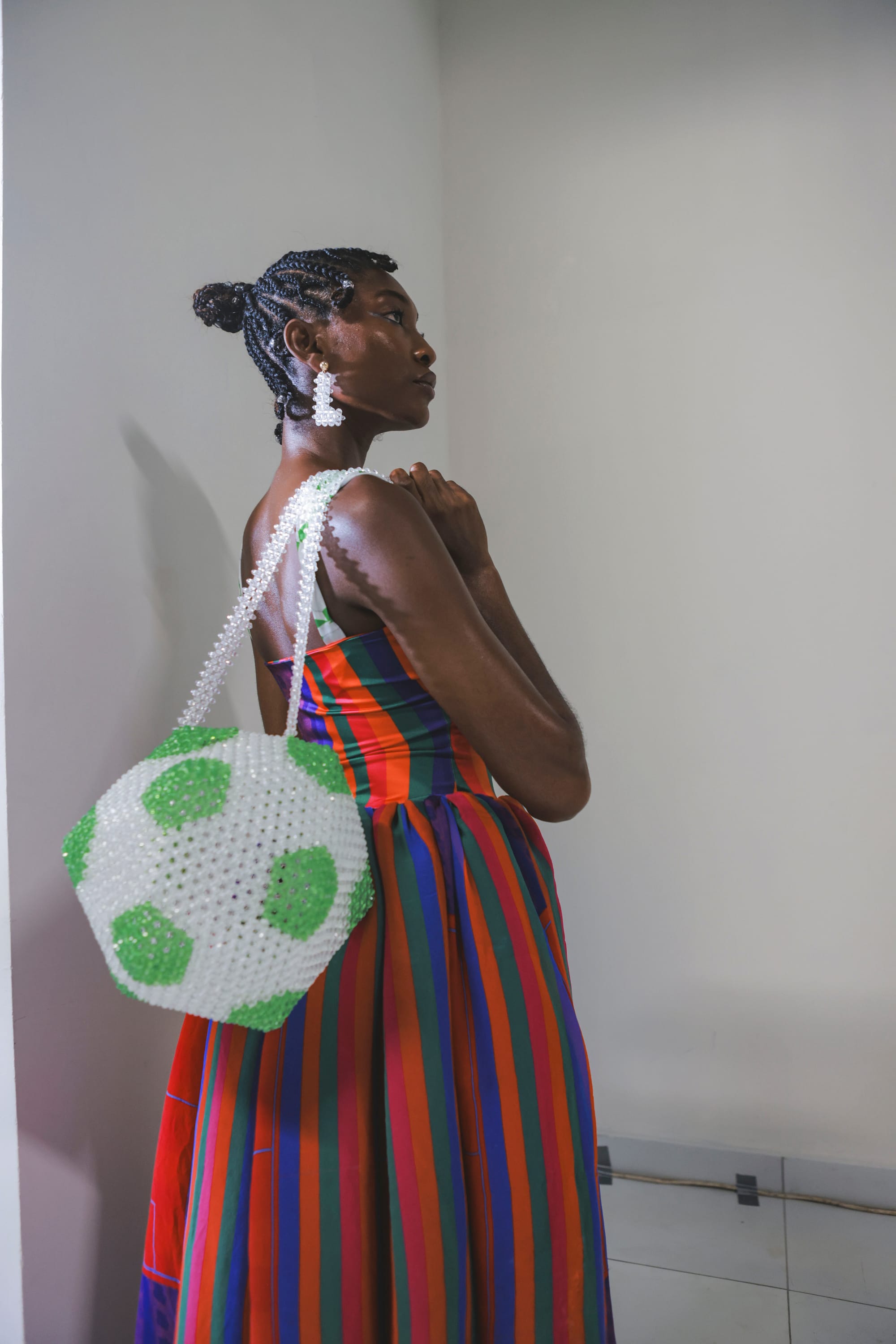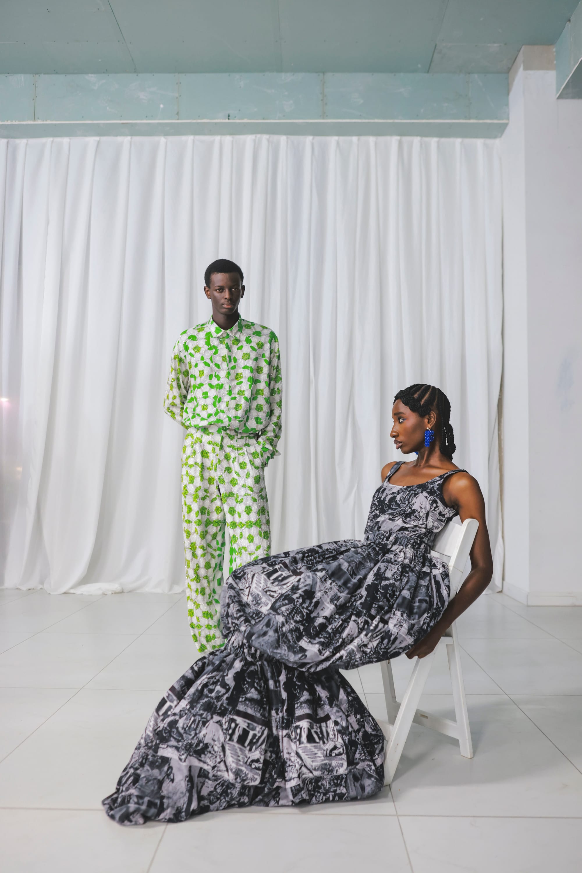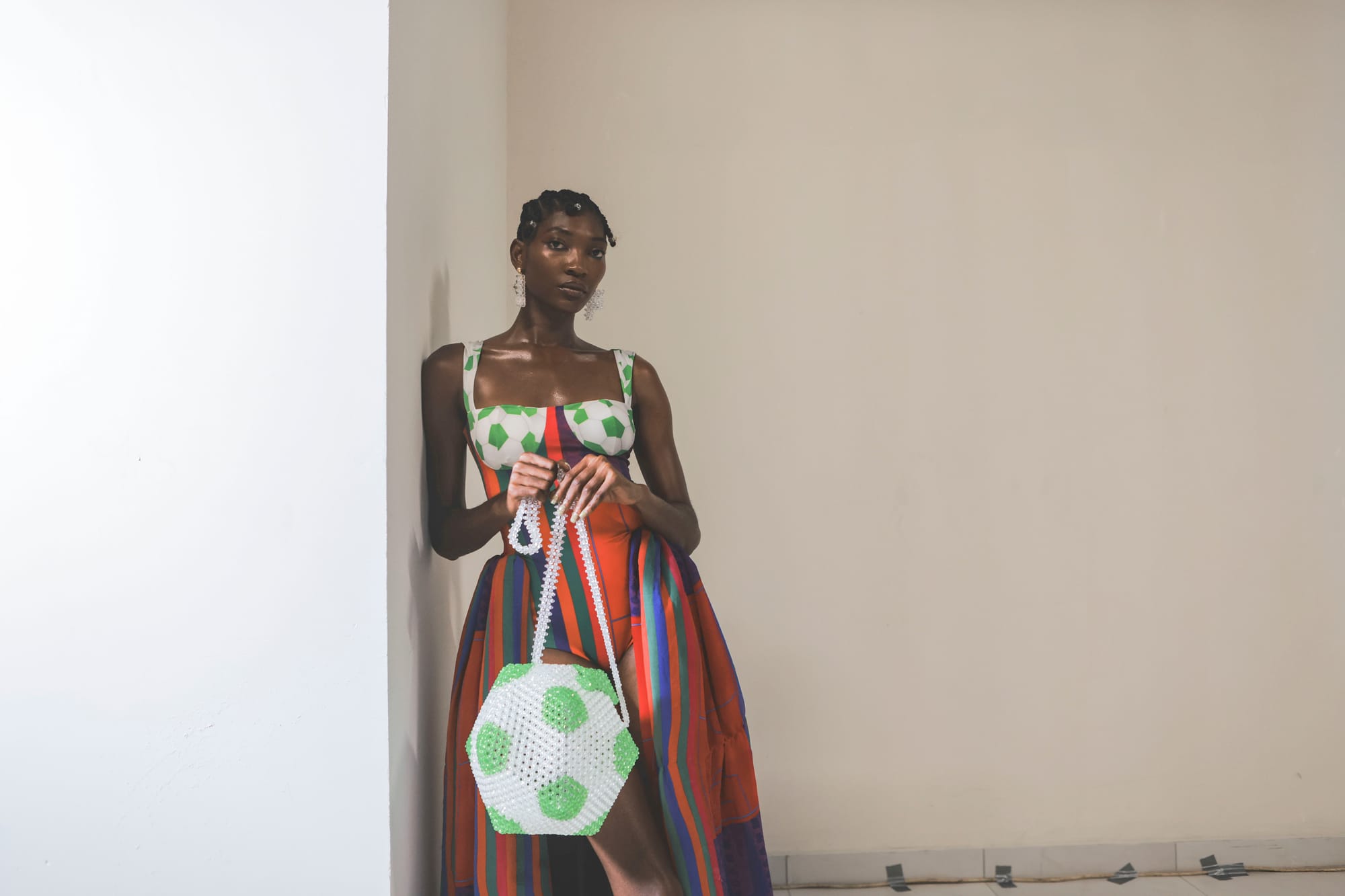 Every piece is designed to capture the spirit of sportsmanship we feel in our daily lives: the constant drive, the ambition, and the focus. Bold prints and intricate hand crafted embellishments bring to life the colors and energy of competition, with the familiar Nigerian game Ayo woven in as a key motif—an emblem of home and tradition within the modern landscape of life as sport.