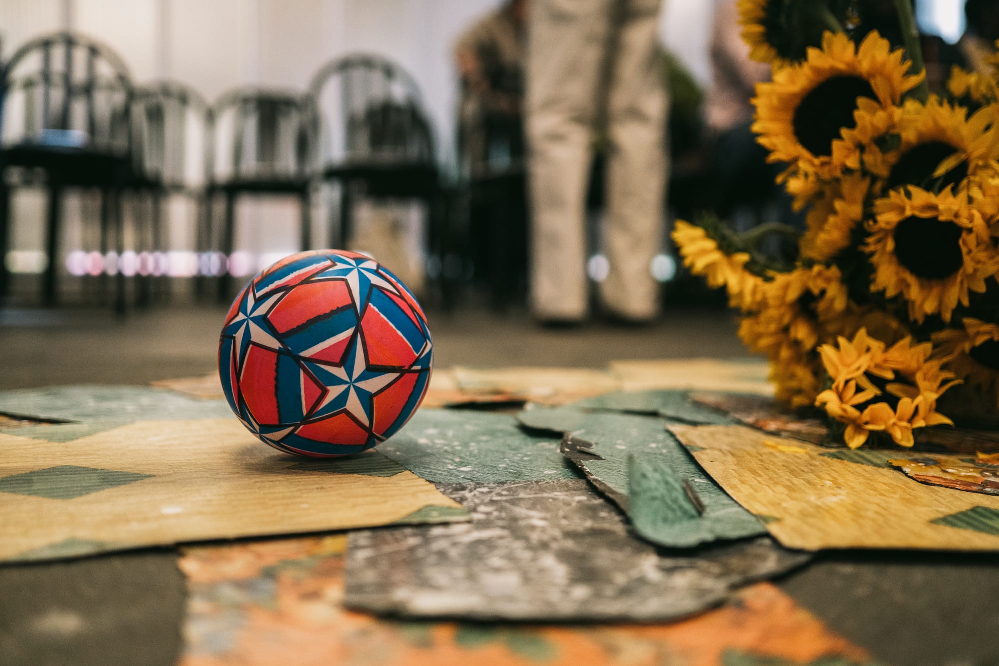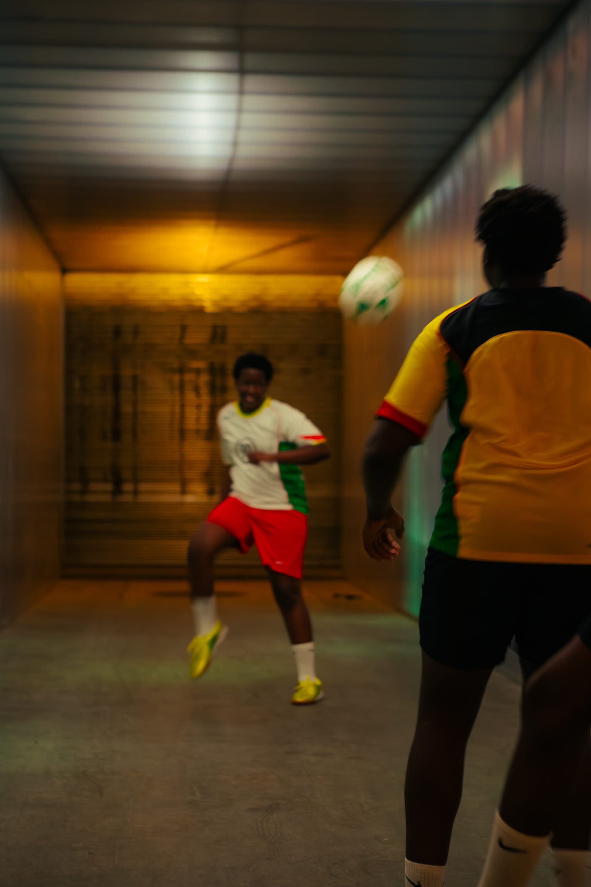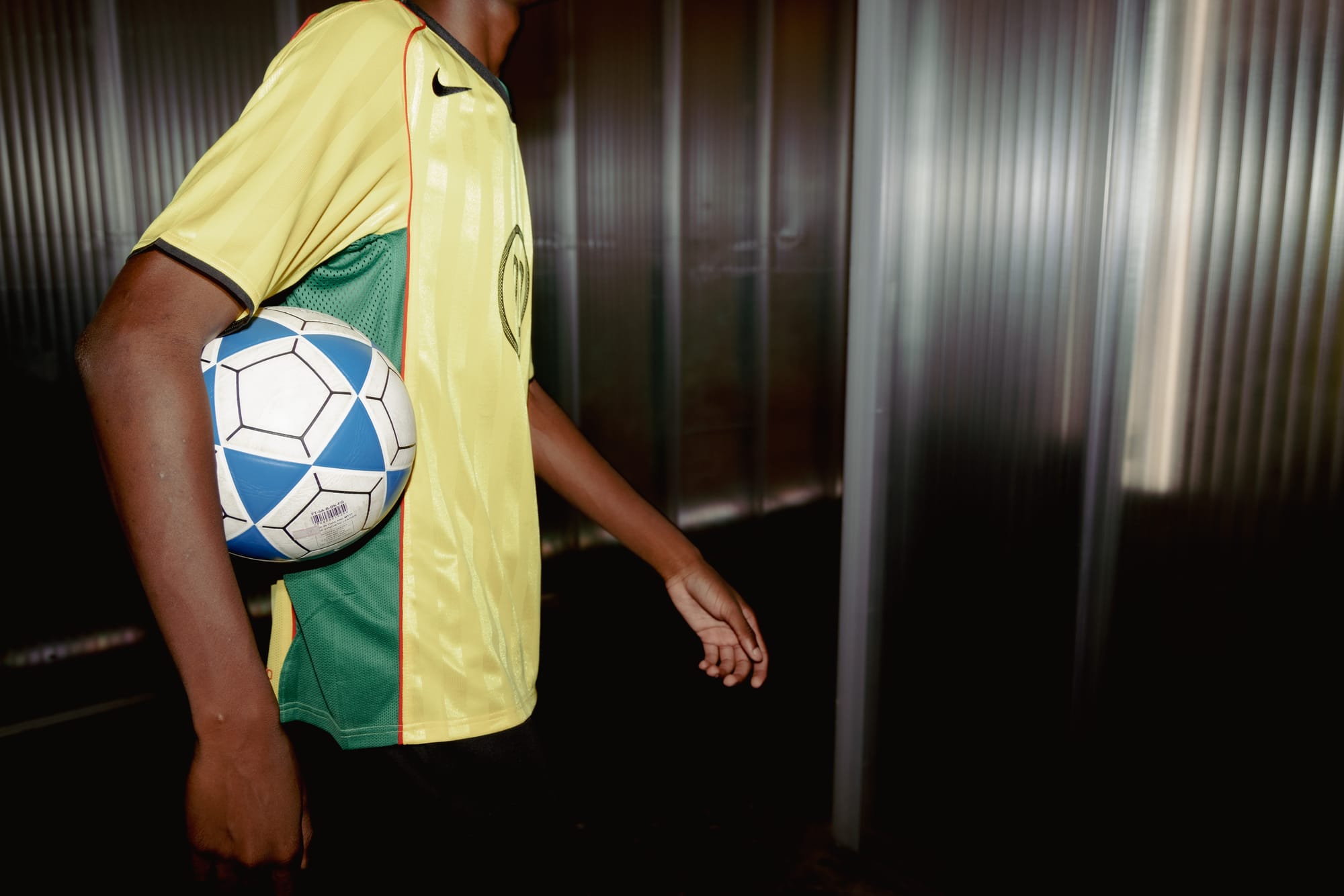 In Togo, football is more than a pastime. It is a social fabric, binding together children, families, and entire neighborhoods. Matches unfold on dusty lots and narrow streets, often with improvised goals and barefoot players. For young people, football is a school of resilience and a space of imagination—where one learns not only skill, but community, survival, and ambition. It is a dream and a discipline at once. That duality—joy tangled with struggle—is precisely what Agbobly translates into his work.