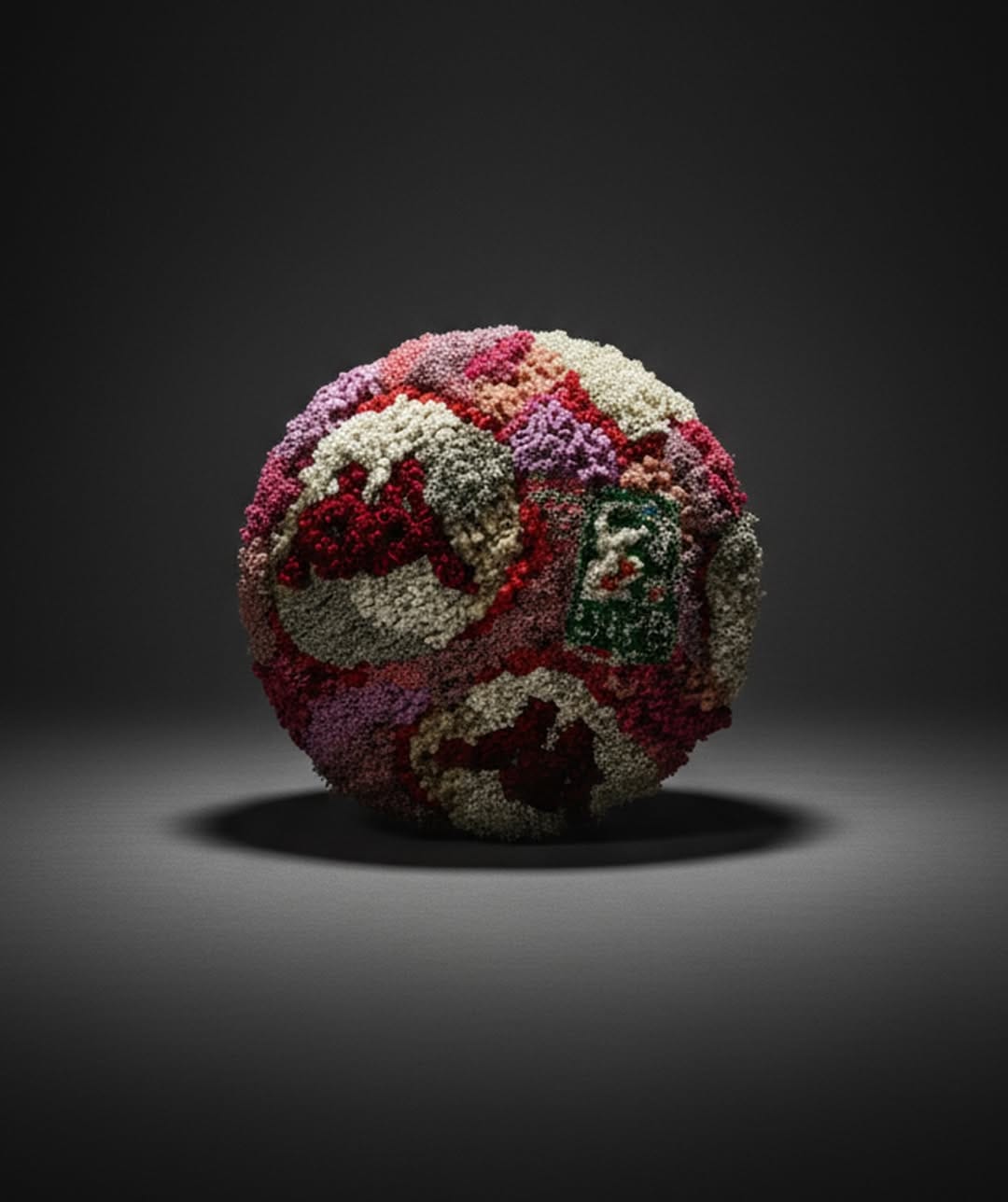 We spotted some creative' works exploring this intersection, using football as both inspiration and material. What emerges is a more poetic interpretation of the sport one that replaces grass with petals, and tackles with texture.